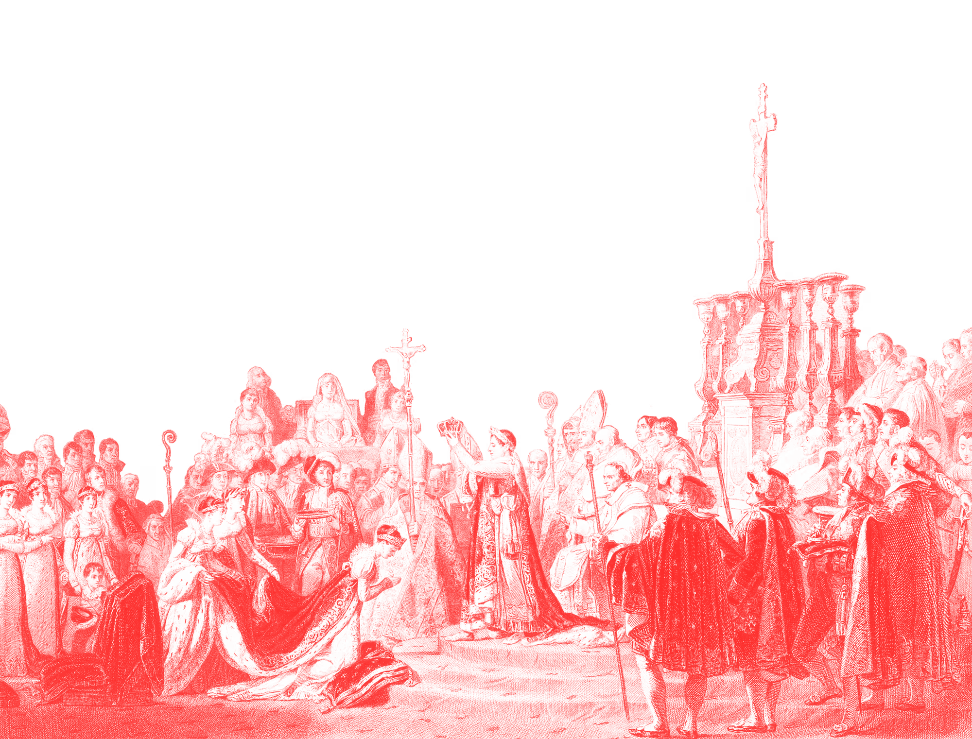 Tra il 1802 e il 1804 si chiuse definitivamente l’esperienza della Repubblica francese e si aprì quella dell’Impero. ll 2 dicembre 1804 avvenne l’incoronazione di colui che sarebbe stato da allora in avanti Napoleone. Il rito sembrava simile a quelli del passato. Ma stavolta non era il Papa a porre lo scettro sulla testa dell’imperatore e di sua moglie, bensì Napoleone stesso. Il messaggio era molto chiaro: il potere sacro gli derivava da Dio e al contempo da sé stesso.