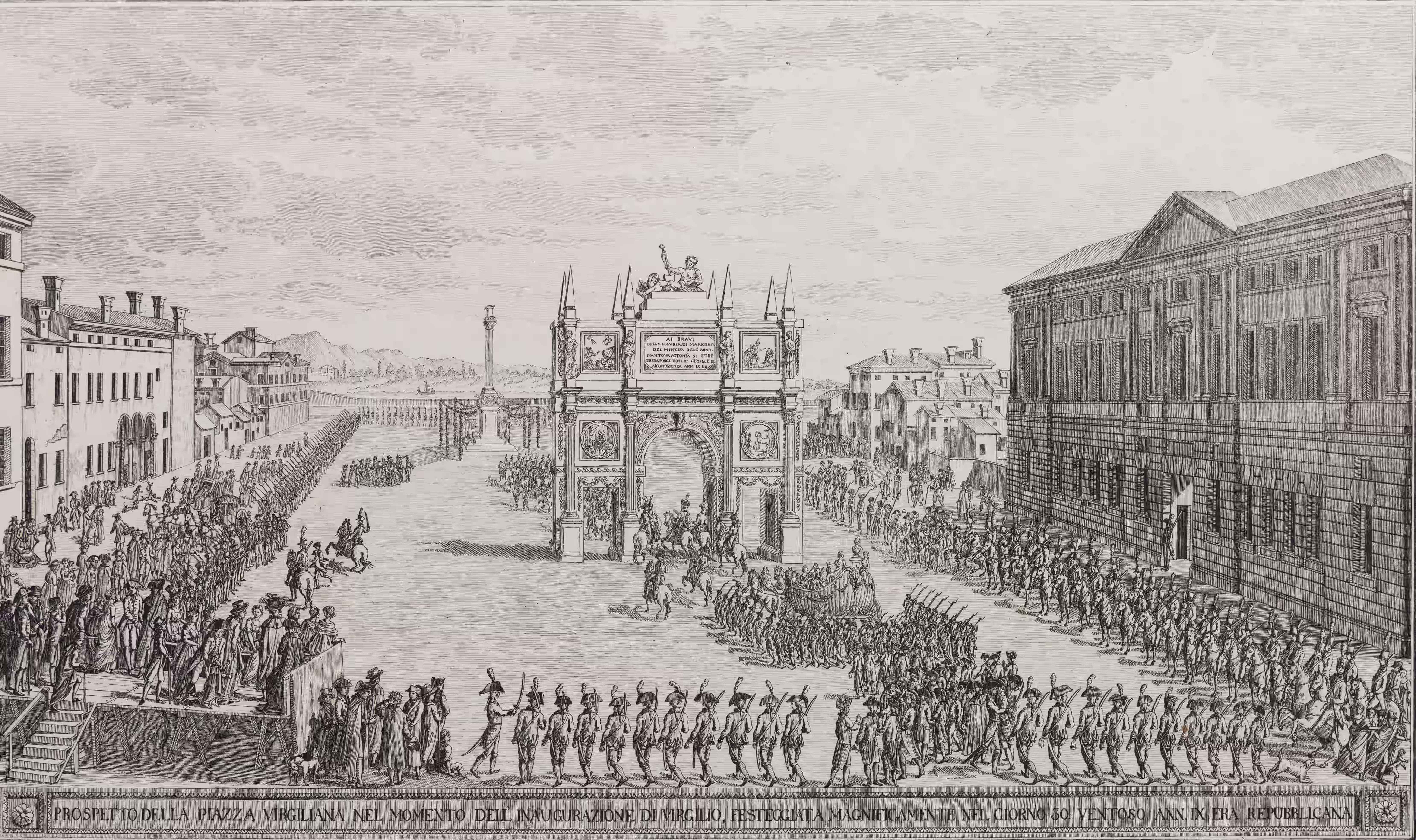 Le autorità repubblicane promossero dovunque i nuovi valori e immaginari rivoluzionari anche mediante progetti di risistemazione architettonica, feste civiche, parate. Con la regia dei militari francesi, lo spazio pubblico fu riempito di simboli repubblicani (fregi, bandiere tricolori, l’albero della libertà), non tralasciando però di celebrare anche una gloria locale: il poeta latino Virgilio.