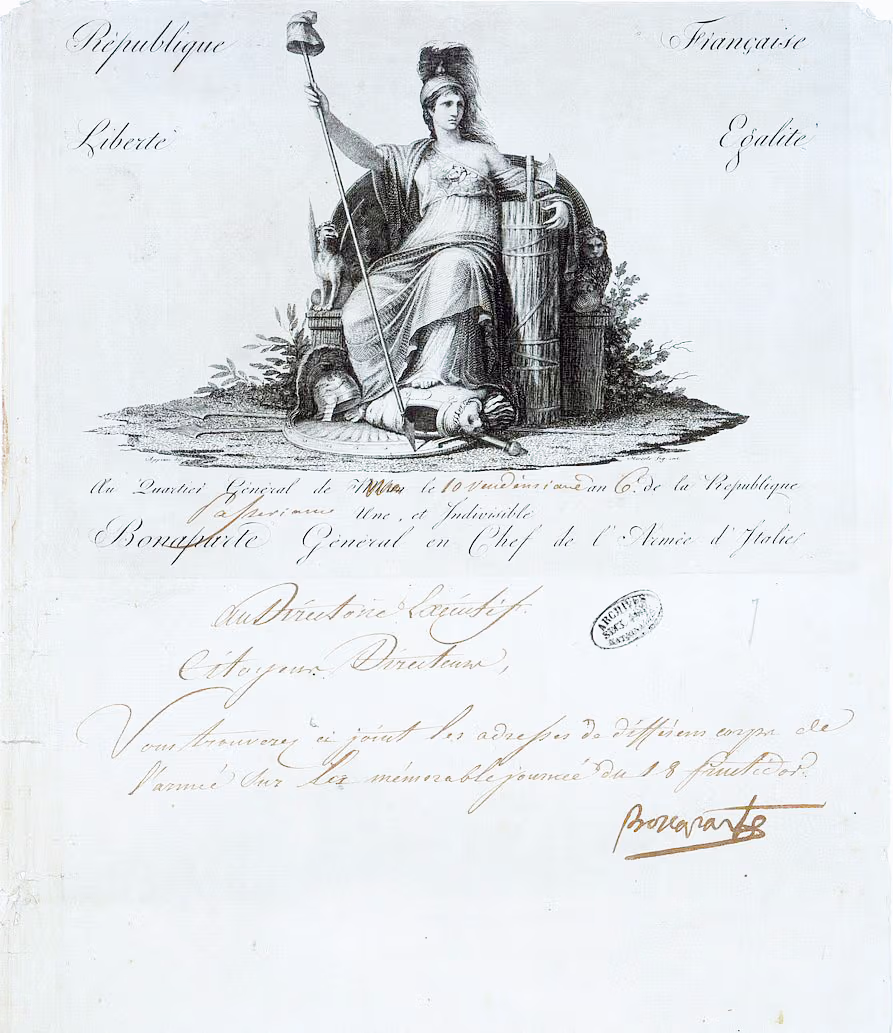 Dall’aprile 1792 la Francia entrava in guerra con le principali potenze europee e lo sarebbe stata per quasi venti anni. All’inizio le armate rivoluzionarie erano piuttosto improvvisate e furono spesso in difficoltà, ma ben presto le cose cambiarono: una migliore organizzazione delle truppe e una nuova generazione di generali permisero all’esercito francese di ottenere vittorie sui diversi fronti. Alla testa dell'armata francese in Italia vi era un giovane generale, Napoleone Bonaparte.